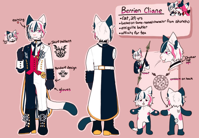 ~☆Name and simple information, front and back view, multiple chibis, and other information such as items and closeups of the character.